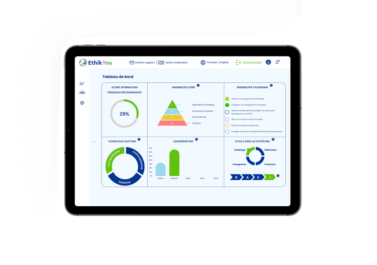 ETHIKYOU, du nom de la société, est une plateforme digitale assimilable à un Assessment Center dédié à la RSE. Cette plateforme se matérialise par un parcours pour évaluer le potentiel naturel d’une personne, mis en perspective avec les approches RSE.